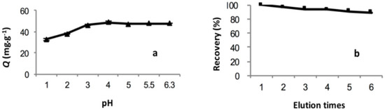 Effect of pH (a) and elution times; (b) on the adsorption capacity of MIIP.