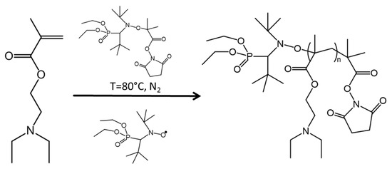 Synthesis of poly(diethylaminoethyl methacrylate) (PDEAEMA) via nitroxide-mediated polymerization (NMP).