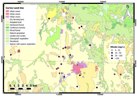 - Arauzo, M.; Martínez-Bastida, J.J. Environmental factors affecting diffuse nitrate pollution in the major aquifers of central Spain: Groundwater vulnerability vs. groundwater pollution. Environ. Earth Sci. 2015, 73, 8271–8286. [Google Scholar] [CrossRef]