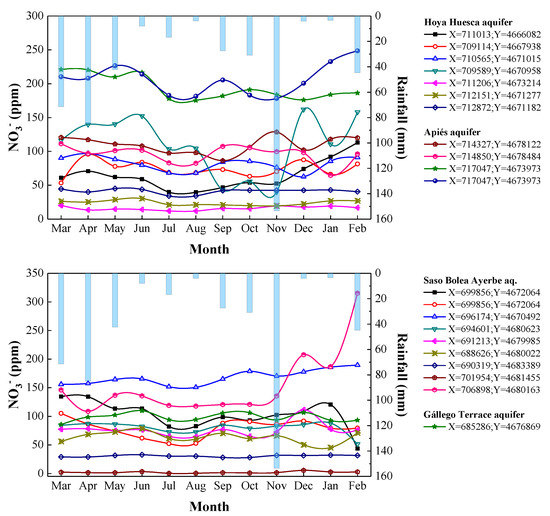 - Boy-Roura, M.; Menció, A.; Mas-Pla, J. Temporal analysis of spring water data to assess nitrate inputs to groundwater in an agricultural area (Osona, NE Spain). Sci. Total Environ. 2013, 452–453, 433–445. [Google Scholar] [CrossRef]