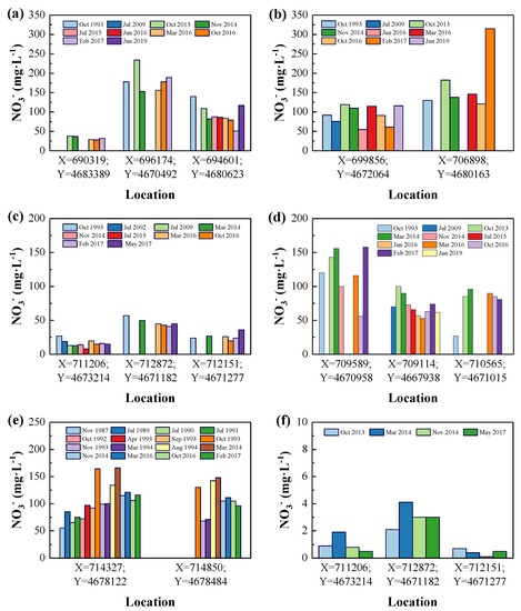 - Babiker, I. Assessment of groundwater contamination by nitrate leaching from intensive vegetable cultivation using geographical information system. Environ. Int. 2004, 29, 1009–1017. [Google Scholar] [CrossRef]