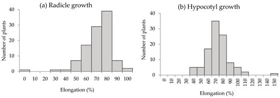 The radicle and hypocotyl elongation (%) of L. sativa seedlings using the DP method (top 20 samples).