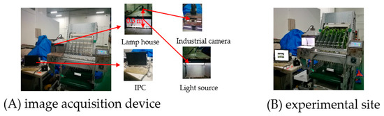 Image acquisition. (A) Image acquisition device; (B) experimental site.