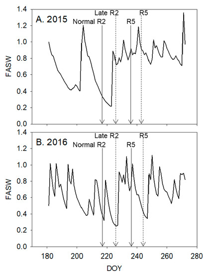 - Chen, G.; Wiatrak, P. Soybean development and yield are influenced by planting date and environmental conditions in the southeastern coastal plain, United States. Agron. J. 2010, 102, 1731–1737. [Google Scholar] [CrossRef]