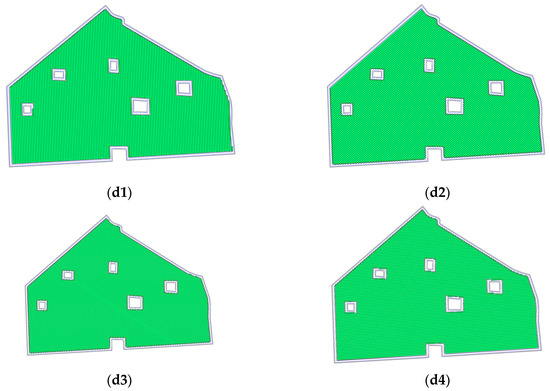 - Regarding infield obstacles, the proposed method does not handle cases such as two obstacles in close proximity. These types of obstacles, from the operational point of view, should be considered as one obstacle. Furthermore, cases of small obstacles (e.g., trees, electricity pylons, etc.) that cause a local deviation from the designed track are not taken into account. The categorization of the obstacles depending on the driving direction, working width, the shape of field, size and location of obstacle [18] is an important step in the map generation since it affects the accuracy and feasibility of the generated field representation scheme.