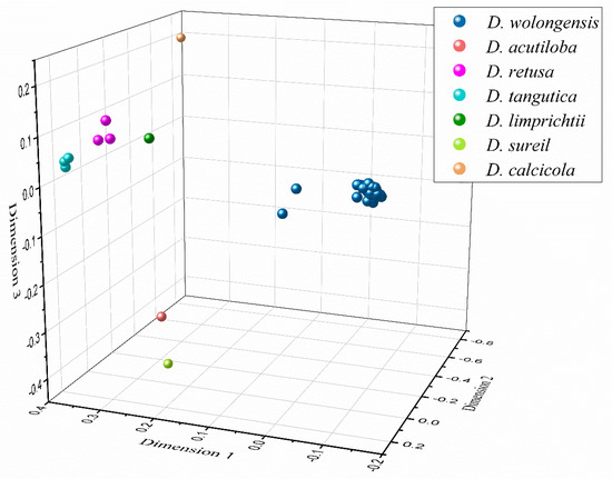 3.4. Genetic Diversity of D. wolongensis and Related Species