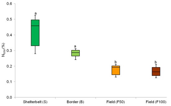 - Jaskulska, R.; Jaskulska, J. Efficiency of old and young shelterbelts in reducing the contents of nutrients in Luvisols. Agric. Ecosyst. Environ. 2017, 240, 269–275. [Google Scholar] [CrossRef]
