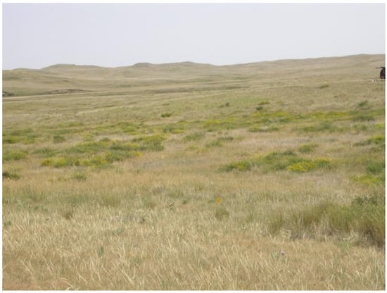 Another important attribute of the GRNG population is the capacity to establish naturally within stands of crested wheatgrass (Agropyron cristatum (L.) Gaertn.). This introduced cool-season grass was widely planted in the semiarid northern Great Plains to revegetate and permanently stabilize abandoned cropland as directed by federal programs, such as the Bankhead-Jones Farm Tenet Act of 1937, prior to the formation of the National Grassland System [24]. This species is highly competitive and relatively impervious to the introduction and long-term establishment of other plant species in semiarid areas [45,46]. About eight million hectares of crested wheatgrass, much in monoculture, occur in the US. The benefits of incorporating alfalfa include economic and environmental parameters [46] such as increased forage production, improved forage quality, and enhanced wildlife habitat.