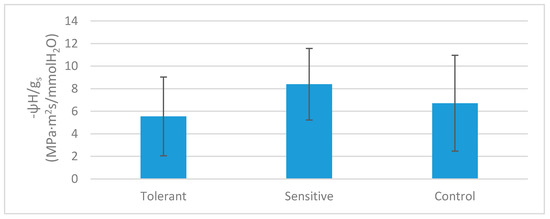 Ratio between water potential and gs in tolerant, sensitive, and control plants. Bars represent standard deviation.