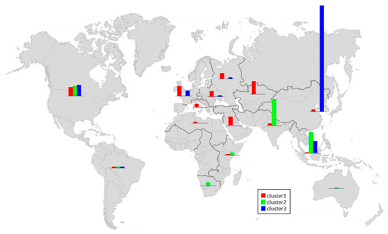 Evaluation of the geographical distribution showed that most of the accessions in cluster 1 were from Europe, Central Asia, and West Asia, whereas the accessions that belonged to cluster 2 were from South/East Asia and India, which is considered to be the center of the origin of cultivated cucumbers. Cluster 3 included accessions mostly from East Asia, which mostly included accessions from Korea, Japan, and China. Accessions from the North America were distributed in all three clusters (Figure 3). According to the Q value ratio, cluster 3 showed a homogeneous genetic background, whereas cluster 1 and 2 showed a slight admixture (Figure 2a and Table S3).