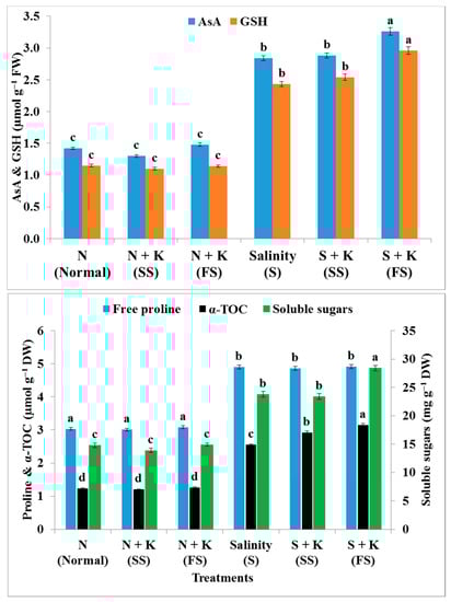 2.2.3. Determination of Osmoprotectants and Non-Enzymatic Antioxidant Contents