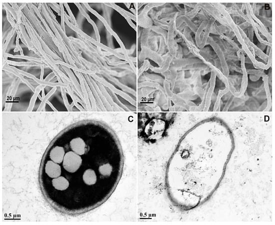 3.4. Damaged Hyphal Structures Were Observed by SEM and TEM