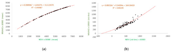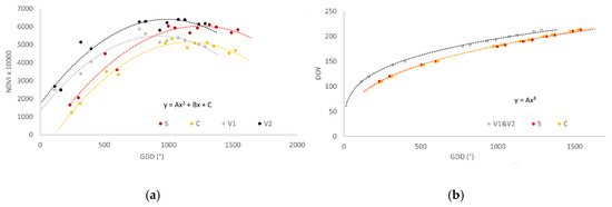 | NDVI | S-V1 | 0.72 | 0.235 | 0.38 | 0.068 | NDVI | C-V2 | −0.35 | 0.363 | 0.52 | 0.009 |