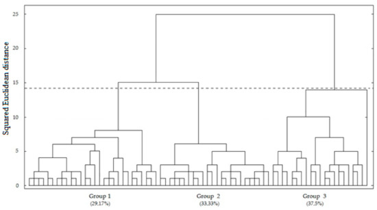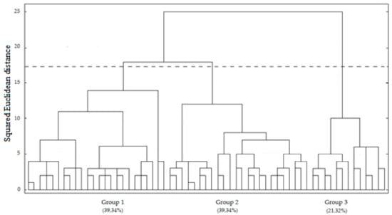 The statistical analysis was conducted using the multivariate classification hierarchical cluster technique. This is a mathematical method that is included in multivariate statistics. Multivariate analysis is the branch of statistical analysis that studies, analyzes, represents, and interprets the data resulting from the observation of p > 1 statistical variables on a sample of n individuals. It focuses on the simultaneous investigation of two or more characteristics (variables), measured on a set of individuals [100]. Hierarchical cluster analysis is mainly used for the formation of groups starting with the basic unit of the objective (BUO), according to the similar characteristics from the similarities or dissimilarities that are presented between pairs of these BUOs in the evaluated characteristics [101]. The hierarchical methodology deals with the grouping of clusters to form a new group, starting with groups as existing individuals in the study and grouping them to form all the cases in the same group [102].