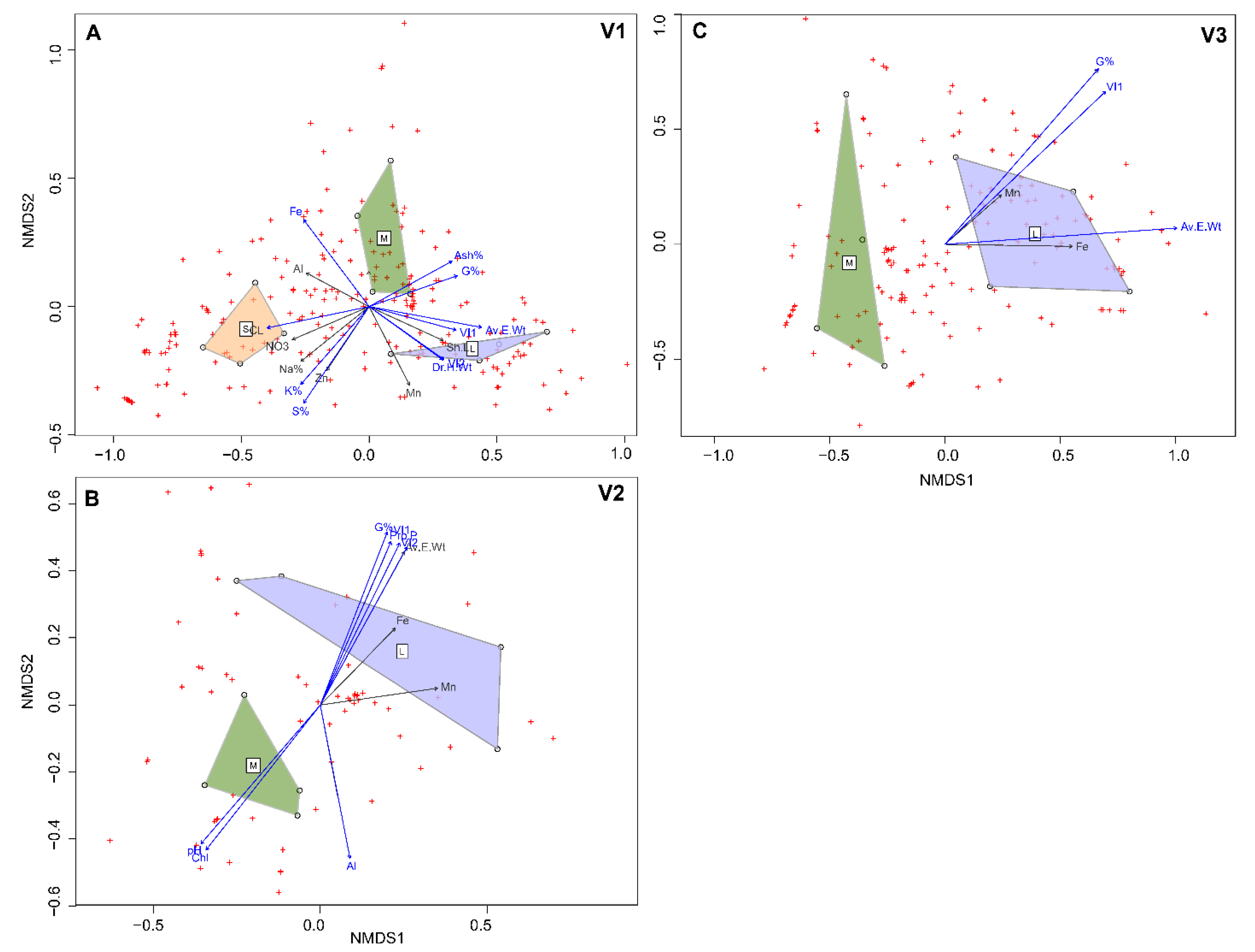 - Oksanen, J.; Blanchet, F.G.; Kindt, R.; Legendre, P.; Minchin, P.; O’Hara, R.B.; Simpson, G.; Solymos, P.; Stevenes, M.H.H.; Wagner, H. vegan: Community Ecology Package, R package version 2.5-5; 2019. Available online: https://CRAN.R-project.org/package=vegan (accessed on 15 November 2019).