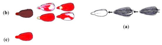 Lethal percentage of seed embryo (L%) and seed dormancy induction (D%); for this purpose, the seeds that did not germinate after five days were cultured in vial without EO for another three days. Seeds that did not germinate after this time were uncoated and immersed in 1% tetrazolium solution (pH = 7) and incubated for 6 h at 30 °C. The endosperm and embryo status were examined using a microscope and the lethality was determined (Formula no. 4). Only seeds that were completely and uniformly colored were considered as live seeds according to the ISTA instructions [24] (Figure 2). With respect to the number of germinated seeds and L%, some seeds were neither germinated nor showed sign of embryo death indicating that they were dormant-induced seeds (Formula no. 5):