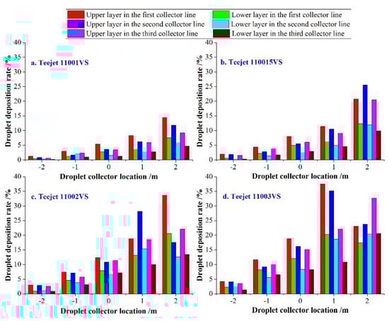 - Ru, Y.; Zhu, C.; Bao, R.; Li, Z.; Ding, T. Droplet size distribution of aerial nozzle for plant protection in wind tunnel and flight conditions. Trans. CSAE 2016, 32, 94–98. (In Chinese) [Google Scholar]