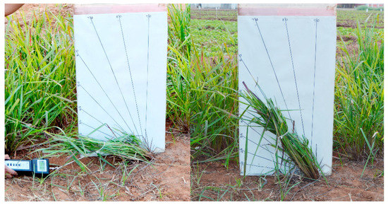 - Terashima, K.; Akita, S.; Sakai, N. Eco-physiological characteristics related with lodging tolerance of rice in direct sowing cultivation. Jpn. J. Crop Sci. 1992, 61, 380–387. [Google Scholar] [CrossRef]
