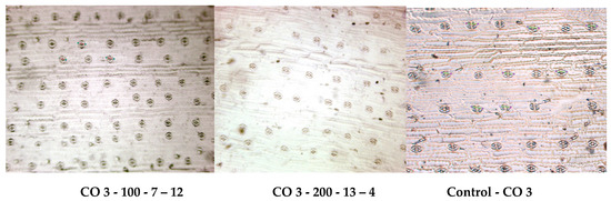 Thickness of sclerenchymatous cell (TSC) showed distinct variations that provided rigidity and culm strength. TSC of the mutants ranged from 8.61 μm to 16.01 μm, whereas the thickness of the wild type (CO 3) was 11.09 μm. The mutant CO 3-300-7-4 had the thickest TSC (16.01 μm). The mutant CO 3-100-18-22 showed the thinnest TSC (8.61 μm) (Figure 5). The information that culm strength is positively correlated with the thickness of sclerenchyma cell walls explained the better lodging resistance in barley [23].
