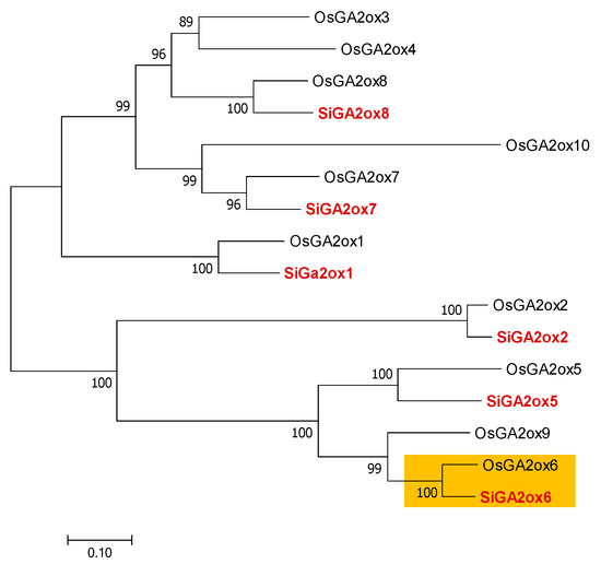 Evolutionary relationships of OsGA2ox and SiGA2ox. The candidate gene chosen for expression analysis is shown within the box.