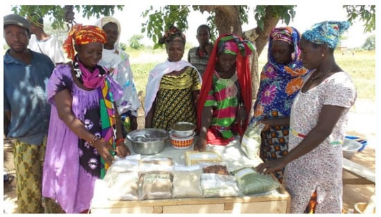 One of the immediate causes of malnutrition is either lack of food or the excessive consumption of calorie-dense, heavily processed foods and/or the insufficient consumption of key foods such as nutritious fruits, vegetables, nuts and seeds []. In the Sikasso region of Mali, rice, millet and sorghum constitute the bulk of the daily diet, with vegetables consumed in small quantities as a side dish []. Reportedly, less than 200g of vegetables per day per person are consumed, well below the recommended 400g/day recommended by the World Health Organization []. At the same time, a study by Siegel et al. [] highlighted that the global and national fruit and vegetable supply is insufficient to meet the nutritional needs of current and growing populations, urging the global nutrition and agricultural communities, particularly in low-income countries, to find innovative ways of increasing fruit and vegetable production and consumption to meet population health needs.