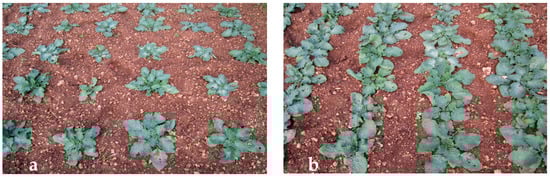 Borage plants grown at 4 (a) and 8 (b) plants m−2.