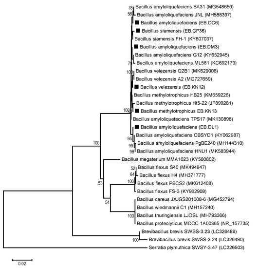 | 4 | EB.DM3 | Bacillus amyloliquefaciens | LC506618 |