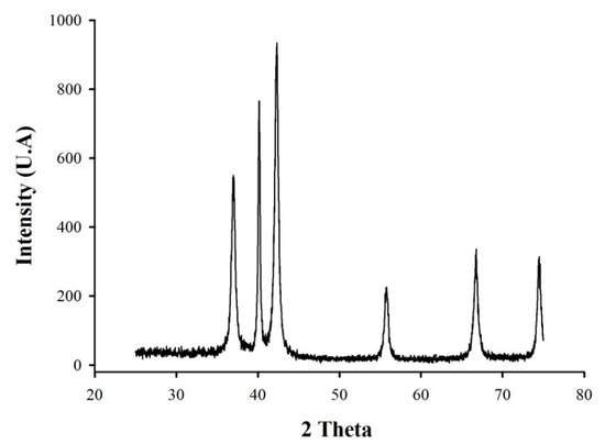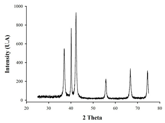 The ZnO powder was analyzed by X-ray diffraction in an XRD 6000 system (Shimadzu ®, Kyoto, Japan). Diffractograms were obtained between 20 to 75° 2θ, in intervals of 0.02° 2θ for 0.6 s, step-mode, using CoKα radiation and nickel filter. The diffractogram peaks correspond to zincite (ZnO) (Figure 1).