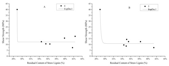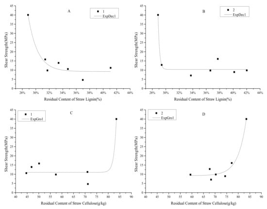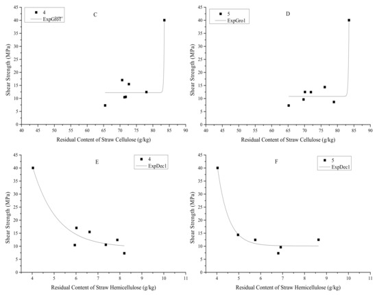 3.5. Relationship between the Straw Shear Strength and Residual Content of Components under RP Conditions