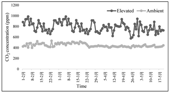 Average daily value of ambient and supplemental CO2 concentration measured at Oklahoma State University (OSU) Department of Horticulture and Landscape Architecture Research Greenhouses (Stillwater, OK, USA) during the study period (average of 2016 and 2017).