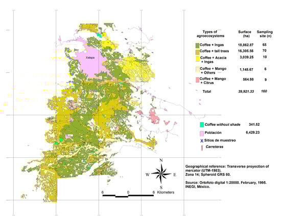 - Manson, R.H. Agroecosistemas Cafetaleros de Veracruz: Biodiversidad, Manejo y Conservación; Instituto Nacional de Ecología: Mexico City, Mexico, 2008; pp. 223–234. [Google Scholar]