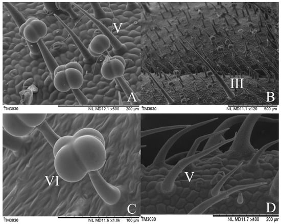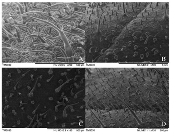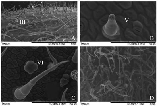 2.2. Observation of Trichomes Difference Using Scanning Electron Microscope