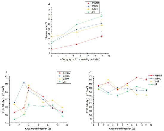 | Accession | POD Activity /U∙g−1∙min−1 (FW) | SOD Activity /U∙g−1∙min−1 (FW) |