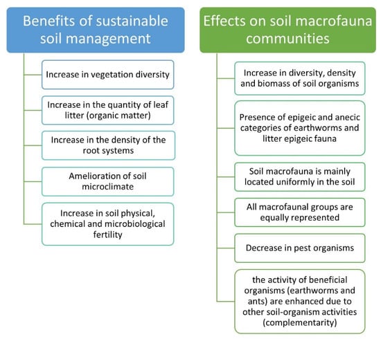 Benefits of sustainable soil management and its effect on soil macrofauna.