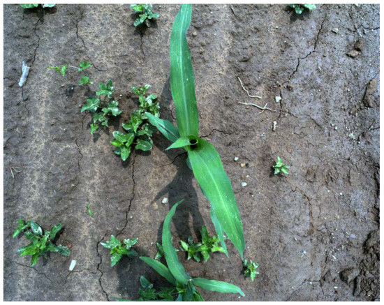 - Mao, W.; Wang, H.; Zhao, B.; Zhang, Y.; Zhou, P.; Zhang, X. Weed detection method based the centre color of corn seedling. Nongye Gongcheng Xuebao Trans. Chin. Soc. Agric. Eng. 2009, 25, 161–164. [Google Scholar]
