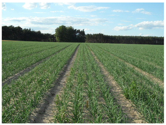Food is the basis of human existence [1]. The increase in the population has caused a need to increase the scale of food production. Agriculture has been intensified to achieve higher productivity [2,3,4]. On the other hand, consumer awareness is increasing, which results in the search for high-quality healthy food [5,6,7]. Growing vegetables is an extremely important element of plant production. Vegetables provide people with vitamins, fiber, and mineral substances. Vegetables should be eaten every day in both fresh and processed form (juices, mousses) and as an addition to other dishes [8,9,10]. Root and alliaceous vegetables are important from a dietary point of view [11,12]. Onion (Allium) is a biennial vegetable plant belonging to the garlic family (Alliaceae Her.). In the process of growing onions, protection against harmful organisms, which primarily include weeds, is an extremely important element. Due to the spread and specificity of onion plants, weeds have very good conditions for development. Mechanical treatment and manual weeding often do not give satisfactory results. In addition, due to the limited availability of the labor force, these results are often unachievable [13]. Currently, the most popular methods of reducing weed infestation are chemical methods, which can significantly reduce yield. The use of herbicides is the most effective method of reducing weed infestation in onion cultivation. Herbicides are defined in the literature as various chemical and non-chemical agents used to inhibit the development of weeds or cause their destruction [13,14]. All herbicides, after reaching the sensitive plant, cause disturbances in its various physiological processes. On-leaf herbicides, after penetrating the plant, through various mechanisms, lead to damage of its cells, tissues, and organs. In the case of soil herbicides, their uptake occurs through the roots, and their action depends on soil and meteorological factors. Herbicides, also known as weed killing agents, constitute the largest group in the sales structure of plant protection products [15,16]. The negative effect of the herbicide on crop is the occurrence of temporary or long-lasting damage called phytotoxicity [13,17]. The effects of phytotoxicity on crops can be observed in all developmental stages and they can affect both parts and whole plants. All the negative effects on crops can affect both the quality and amount of yield. A reduction of the adverse impact on the crop and the natural environment has taken place thanks to the introduction of integrated plant protection, among others. Its purpose is to reduce the consumption of chemical plant protection products [18,19]. Chemical protection treatments should be carried out taking into account three basic principles: Spraying only the object that is necessary, using the amount that is necessary to achieve the intended purpose, and minimizing the amount of plant protection products released into the environment [20].