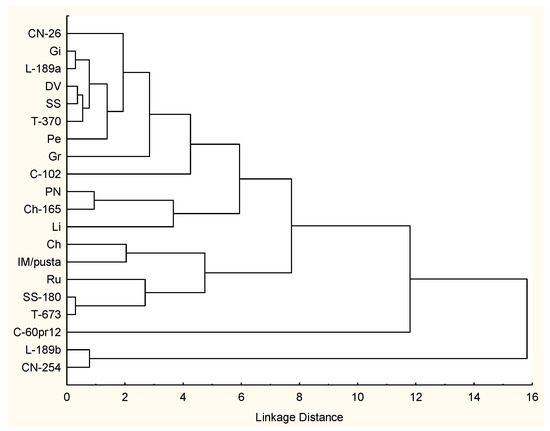 It seems that this bioactive compound might not be important in landraces recognition and might oscillate depending on the tomato growing technology. Our observation is also supported by other researches regarding the accumulation of AsA in tomatoes; major differences have been found among the individual samples but not between tomato varieties. It seems that light exposure of tomato fruits directly affects the accumulation of phyto-compound [87]. Analyzing the contribution of different traits to inside cluster diversity, it was found that the highest diversity exists between the landraces Ch, IM/pusta, Ru, SS180, and T-673 grouped in Cluster III (D2 = 3.62), while between landraces L-189b and CN 254 from Cluster V, a high similarity (D2 = 0.78) was recorded to all nutritional components (Table 5).