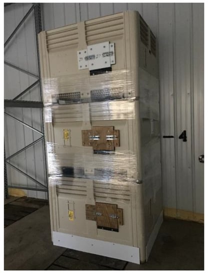 At harvest, rocks, soil debris and clods, and foreign materials were hand removed from the tubers. Pulp temperatures of the tubers at harvest ranged between 12.2 °C and 15.6 °C. About 1350 kg of each variety was machine harvested and evenly put into three large plastic storage totes (114 cm (L) × 123 cm (W) × 88 cm (H), Capacity 450 kg, Figure 1) (model 34-S, MacroPlastics Inc., Fairfield, CA), which were placed on top of each other to simulate commercial industry practice. Gaps between the totes were tightly sealed by plastic wraps to ensure consistent airflow within the totes. The totes were then held under each of the three wound-healing treatments. Under each treatment, from top to bottom the order of the totes was Snowden, Hodag and Russet Burbank in 2017 and Snowden, Lamoka, Hodag and Russet Burbank in 2018. In each tote three replications of 4.5 kg of healthy potatoes were randomly selected and placed into polypropylene mesh bags, which were then placed on the top of the storage pile within the tote.