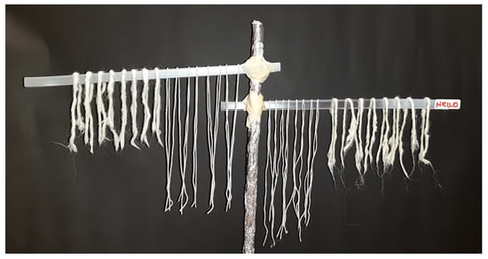 Image of the post-etching cotton and wool fibers: the treatment with aluminum potassium sulfate (left) and lemon juice (right).