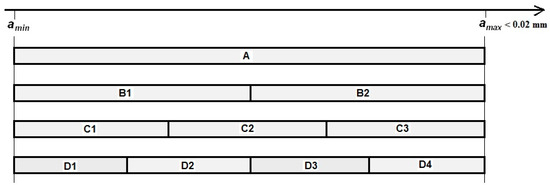 The method of division of soils into a different number of sets (A; B1–B2; C1–C3; D1–D4) during preliminary research.