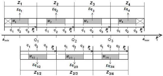 At the second stage, the main sets were smoothed, consisting of the secondary ordering of the data in accordance with the parameters (PII) other than at the first stage. When arranging the data, only one parameter was used at a time. After the second stage, the Zx sets were divided into four sets (defined by quartiles). Because this operation concerned the subsets, they were marked with the lower case letters, i.e., q1, q2 and q3.
