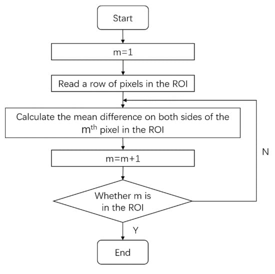 In this section, the dividing point was extracted in ROI in units of row. The vertical projection was used to eliminate the noise. The points in the ROI with the largest mean difference were found between the left and the right side of the image and were set as the dividing points.