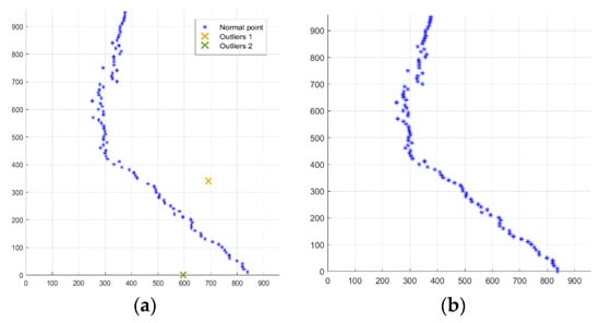 Figure 11a shows two outliers gained from two processes of classification, which were represented as outlier 1 and outlier 2. Figure 11b shows the effect when the two outliers were corrected.