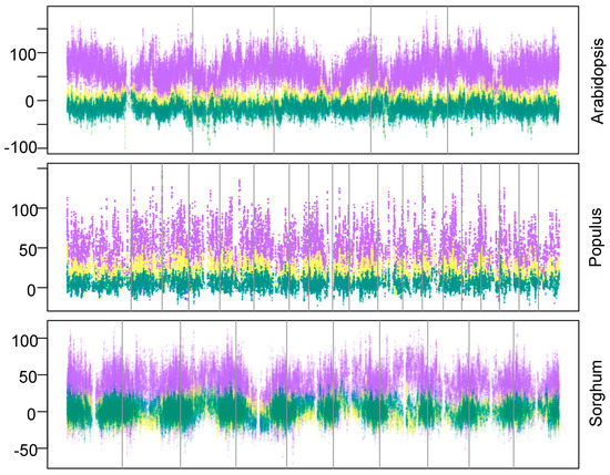 Genomewide SNP data was acquired from published studies on wild European Arabidopsis thaliana (L.) Heynh., a model species, wild North American Populus trichocarpa Torr. & Gray, a source of wood fiber, and landrace African Sorghum bicolor (L.) Moench., a grain/feedstock commonly cultivated in arid areas [26,27,28]. Many published data sets of genomewide SNP variation sample a single individual per accession. Such data are not suitable for representing the genetic diversity present in heterogeneous germplasm collections of wild and landrace material. Therefore, populations/accessions used here were subsampled from the original studies. All contained > 4 individuals, equivalent to accepting a worst-case minor allele frequency (MAF) of 0.125. The Arabidopsis data set contained 40 populations with 441 individuals and 214,051 SNPs on 5 chromosomes; Populus, 56 populations, 251 individuals, 32,860 SNPs on 19 chromosomes; sorghum, 113 individuals, 22 accessions, 404,614 SNPs on 10 chromosomes. For Populus and sorghum, haplotype phase and missing genotypes were imputed using fastPHASE [29]. Provenance details and maps displaying the geographic distribution of the populations/accessions used here are contained in prior publications [23,24,26,27,28].