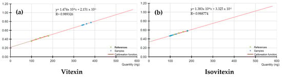 Standard curve for vitexin (a) and isovitexin (b) of Ficus deltoidea var deltoidea.