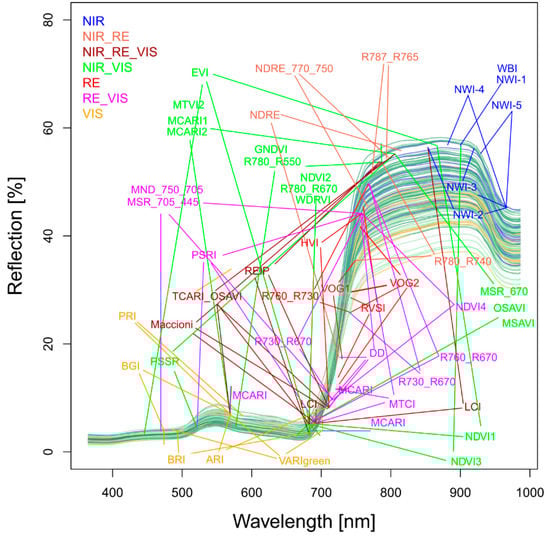 - Prey, L.; Schmidhalter, U. Temporal and Spectral Optimization of Vegetation Indices for Estimating Grain Nitrogen Uptake and Late-Seasonal Nitrogen Traits in Wheat. Sensors 2019, 19, 4640. [Google Scholar] [CrossRef]