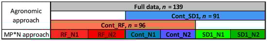 - Prey, L.; Germer, M.; Schmidhalter, U. Temporal and Organ-specific Responses in NUE Traits to N Fertilization, Fungicide Intensity and Early Sowing in Winter Wheat Cultivars. Agronomy 2019, 9, 313. [Google Scholar] [CrossRef]