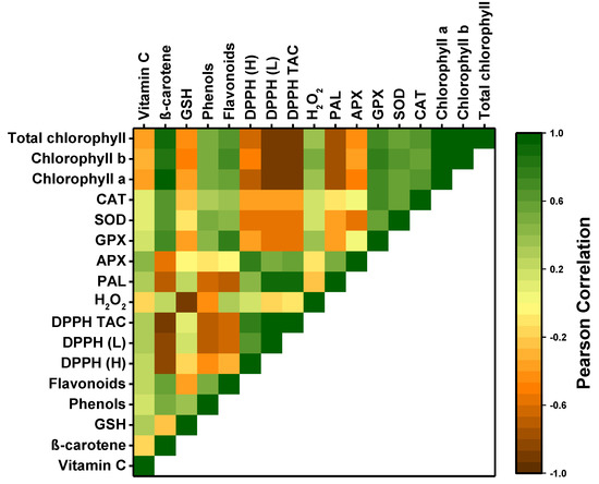 Researchers have also observed that there is a high correlation between the antioxidant capacity and the PAL enzyme. This is an expected response due to the role of said enzyme in the production of phenolic compounds [68], which, among other things, function as antioxidants and protect against oxidative stress.