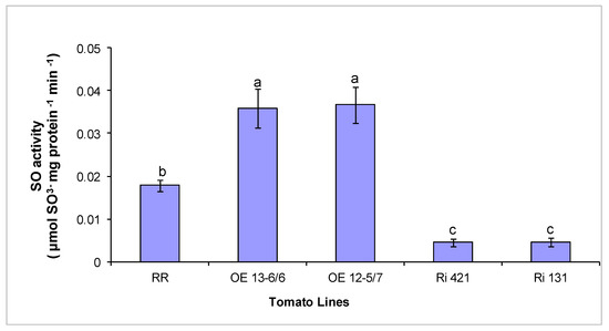 Sulfite Oxidase Activity Level Determines the Sulfite Toxicity Effect in Leaves and Fruits of Tomato Plants