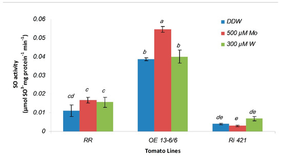 2.3. Effect of Molybdenum and Tungsten Application on Wild Type and SO Modified Plants